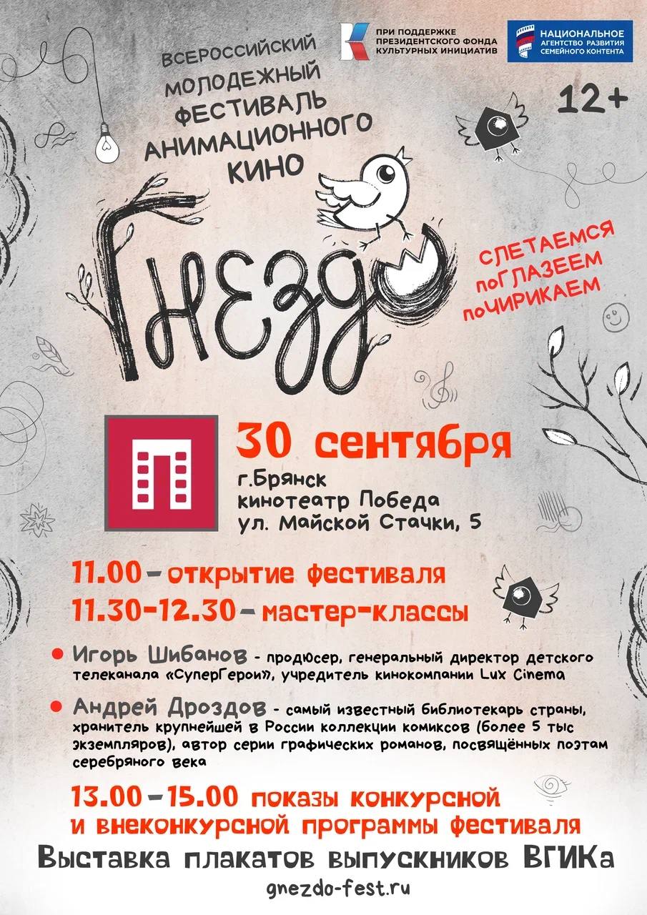 Завтра представим наш фестиваль в Брянске. Будем ждать вас в кинотеатре «Победа» с 11.00. Вход свободный по регистрации (https://forms.yandex.ru/u/68cd4a45d0468856b83566ef). (https://forms.yandex.ru/u/68cd4a45d0468856b83566ef)